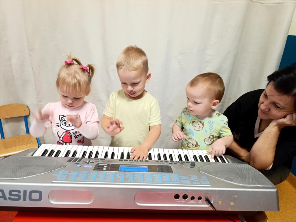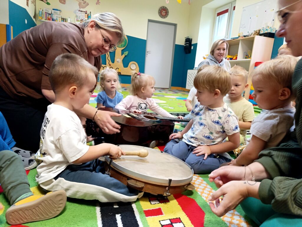 Graliśmy na instrumentach muzycznych, słuchaliśmy muzyki, wzięliśmy udział w zajęciach muzyczno-ruchowych, a nawet spróbowaliśmy wspólnie stworzyć pierwszą „orkiestrę” ![]()