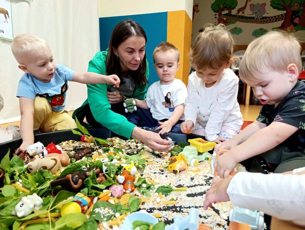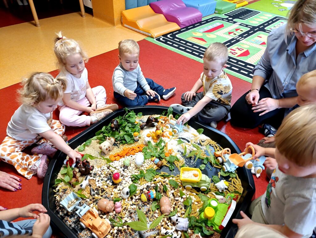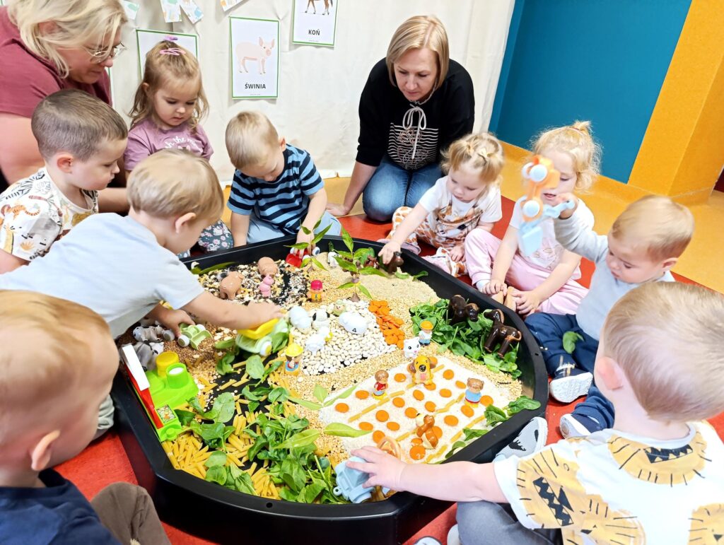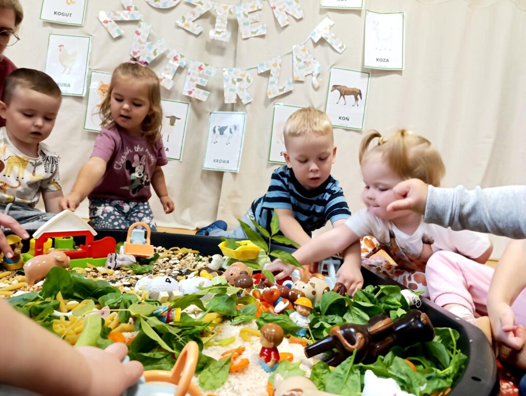 Z okazji dnia zwierząt w żłobku panowała radość i mnóstwo pozytywnej energii. Dzieci z zaciekawieniem poznawały świat zwierząt. Najwięcej uśmiechów pojawiło się podczas wspólnej zabawy sensorycznej, podczas której mogły karmić zwierzątka i się nimi bawić.