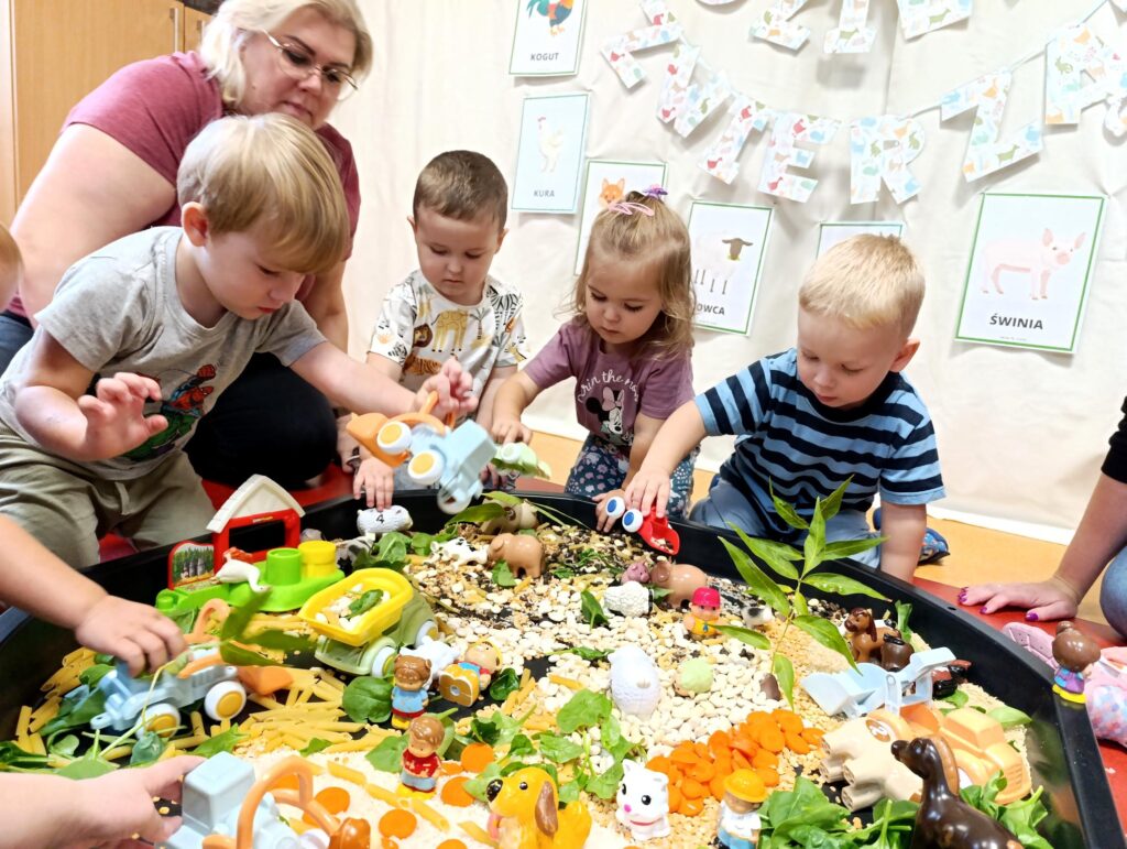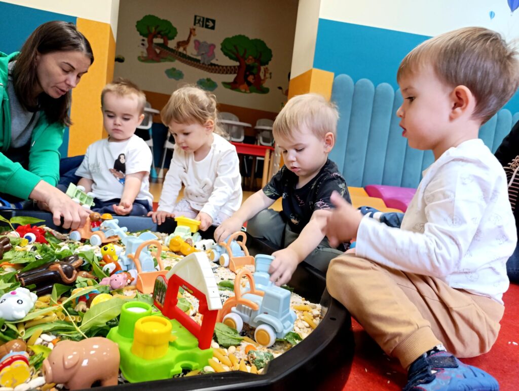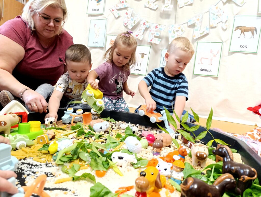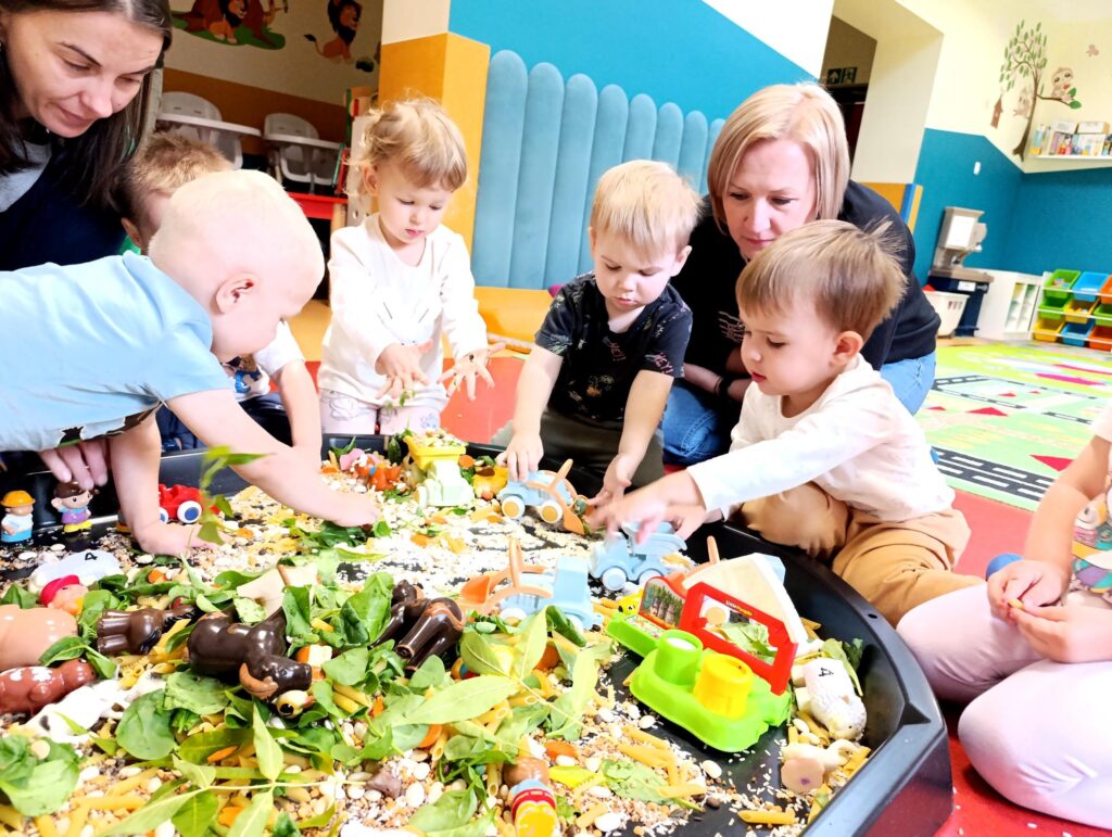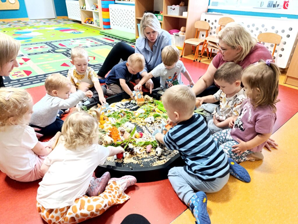 Z okazji dnia zwierząt w żłobku panowała radość i mnóstwo pozytywnej energii. Dzieci z zaciekawieniem poznawały świat zwierząt. Najwięcej uśmiechów pojawiło się podczas wspólnej zabawy sensorycznej, podczas której mogły karmić zwierzątka i się nimi bawić.